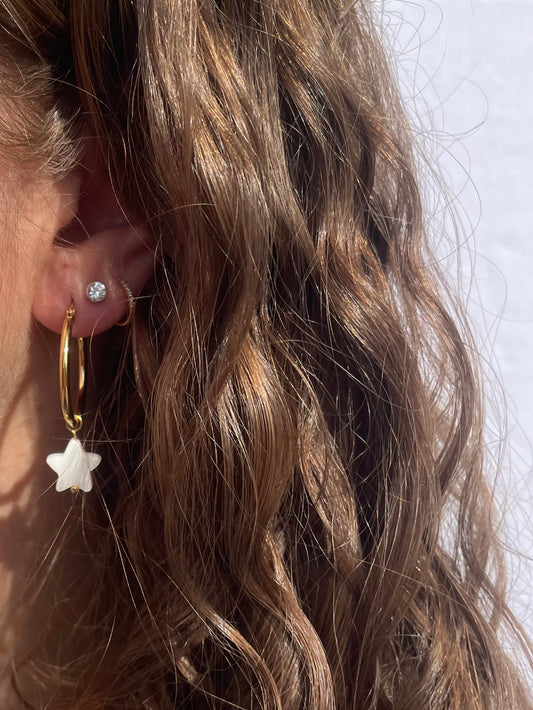 Discover our range of stunning earrings featuring golden and silver designs enhanced with details like mother-of-pearl, freshwater pearls, millefiori glass beads and more. Each pair is crafted from stainless steel and water-resistant, ensuring lasting beauty and durability. Find the perfect earrings to enhance any outfit and occasion.